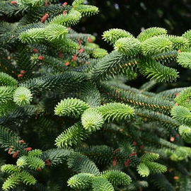 An evergreen coniferous tree, the fir's needles are short—only 1–2 cm—stiff and thick, with blunt or sharp tips. It is widely used in ornamental landscaping due to its unusual needles and dense crown.