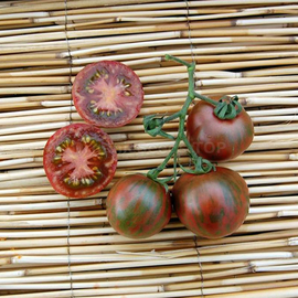 Mid-ripening variety, 110 days, medium-sized bush, 1.2 m high, fruits are sweet, flat, fleshy, cylindrical, smooth, chocolate brown in color, weighing 40 grams, very beautiful, exceptional yield and disease resistance.