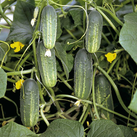 An early, parthenocarpic gherkin-type variety, cucumbers ripen in 37-40 days after planting, the fruits are cylindrical, elongated, up to 10-12 cm in length, the flesh is crispy, juicy, with a small number of seeds, protected by a dense, thin skin.